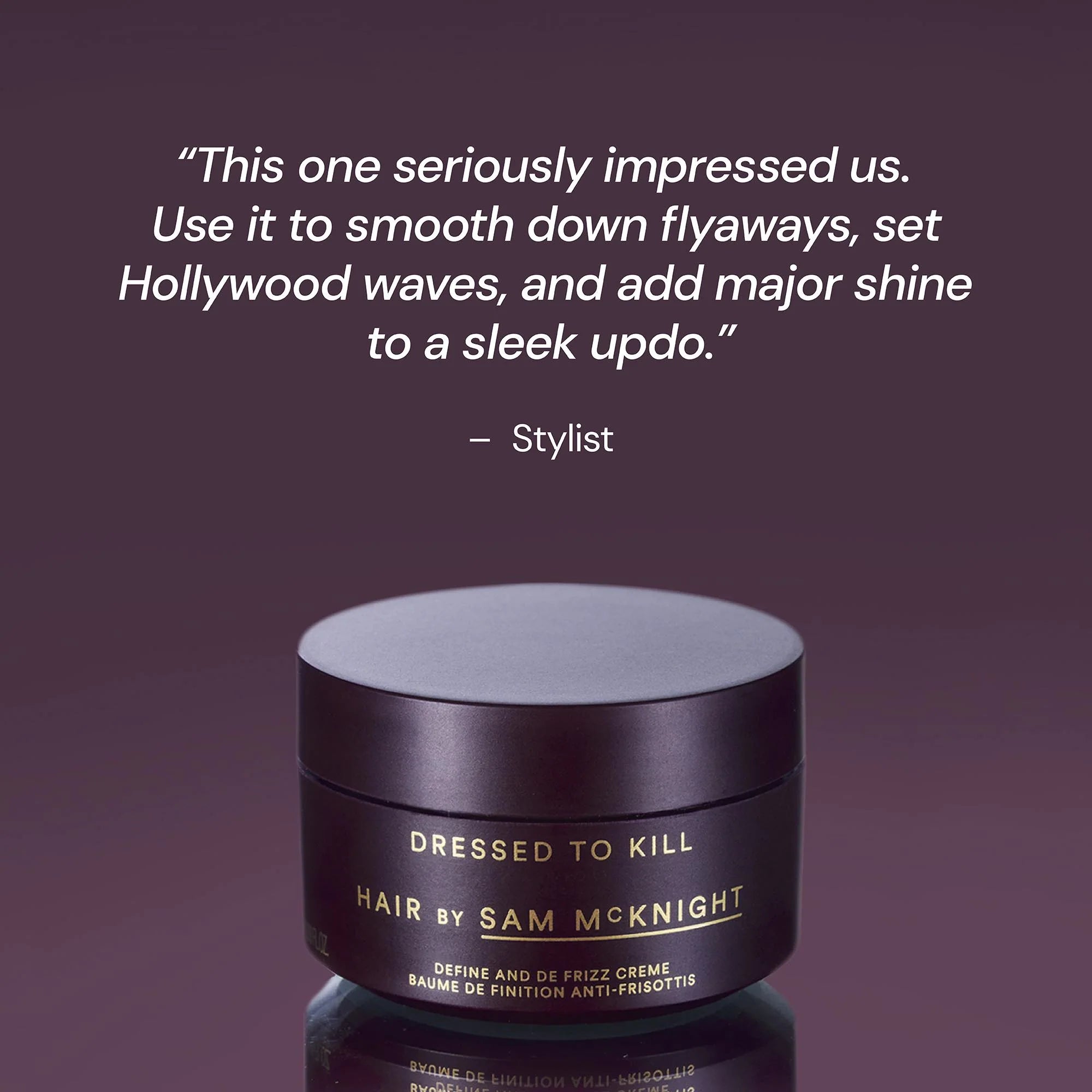 Dressed to Kill Define and Defrizz Creme to wszechstronny krem stylizujący, który ujarzmia puszenie, wygładza pasma i podkreśla naturalną teksturę włosów. Jego lekka, elastyczna formuła sprawia, że włosy pozostają miękkie, a fryzura wygląda naturalnie i zadbanie przez cały dzień.
