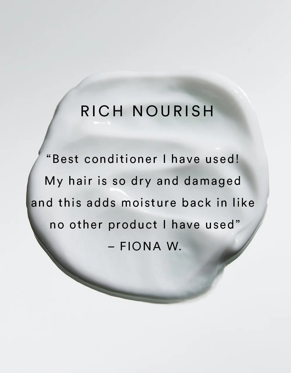 Rich Nourish Conditioner to odżywka stworzona z myślą o bardzo suchych, zniszczonych lub farbowanych włosach, które wymagają intensywnej pielęgnacji. Formuła zawiera olej rycynowy bogaty w witaminę E oraz kwasy tłuszczowe Omega-6 i Omega-9, które skutecznie nawilżają i wygładzają włosy, poprawiając ich elastyczność oraz redukując puszenie. Dodatkowo, olej słonecznikowy, pełen witamin i minerałów, dodaje włosom blasku i miękkości, jednocześnie chroniąc przed łamliwością. Panthenol i cukrowa burak przywracają nawilżenie, zapewniając zdrowy wygląd i ochronę przed uszkodzeniami.