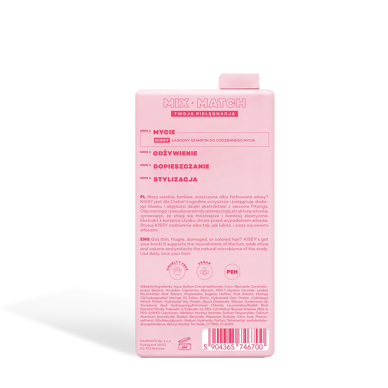 - Dla najlepszych rezultatów stosuj w połączeniu z odżywką Hairmate Kissy.