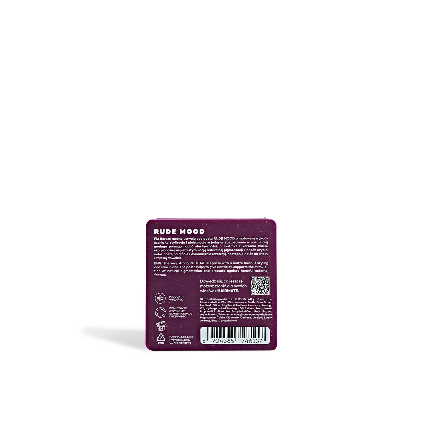 Bardzo mocno utrwalająca pasta do włosów Rude Mood od Hairmate o matowym wykończeniu to stylizacja i pielęgnacja w jednym.