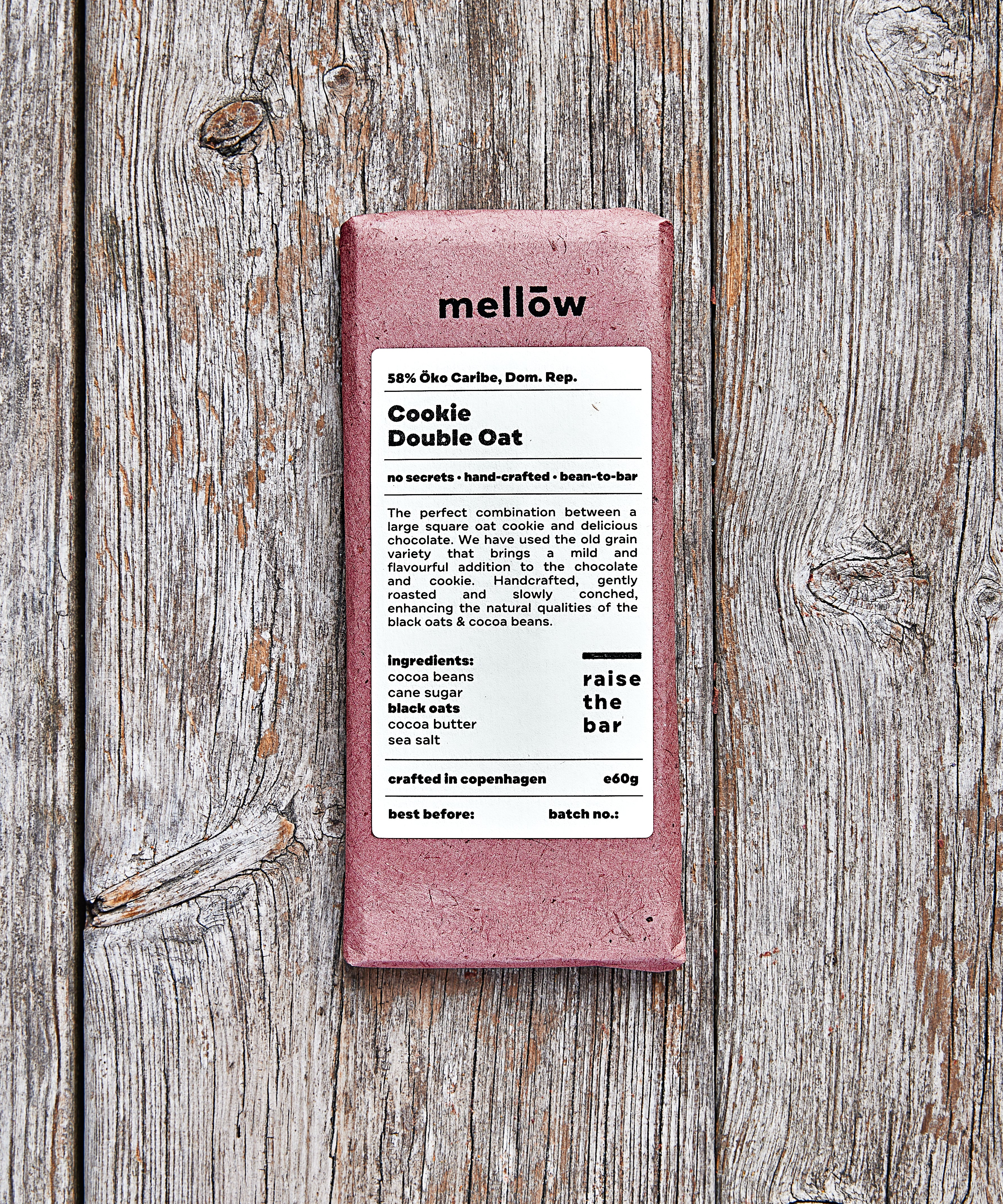 Aksamitna czekolada z chrupiącym ciastkiem o wyraźnym owsianym smaku, delikatnie podkreślonym szczyptą soli morskiej.