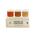 Zestaw 3 świec (80 gram) w drewnianym pudełku.